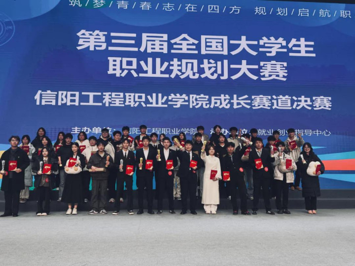 12月9日下午,信阳工程职业学院第三届职业规划大赛成长赛道总决赛在百花厅举行。校长黄功学和立能产业学院、教务处、经济与艺术学院、纺织服装产业学院负责同志出席。参赛选手、就业创业骨干教师、指导老师及25级全体学生参会。
